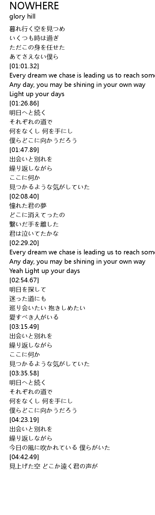 | [02:30.10] | Every dream we chase is leading us to reach somewhere or nowhere |