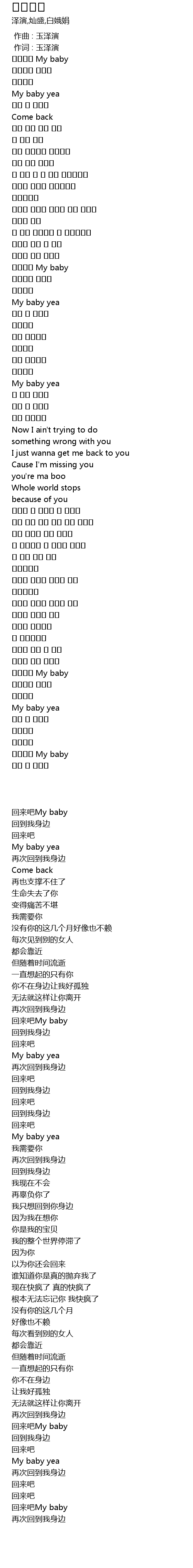 | [01:30.400] | 回来吧My baby |