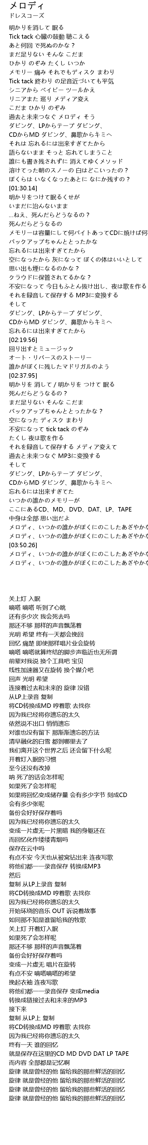 | [03:33.20] | ここにあるCD、MD、DVD、DAT、LP、TAPE |