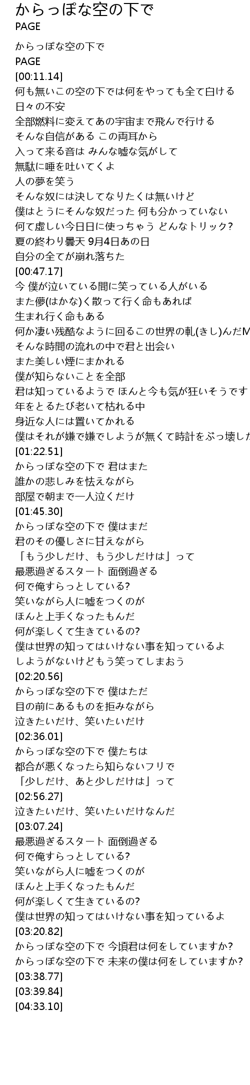 | [00:00.00] | からっぽな空の下で |