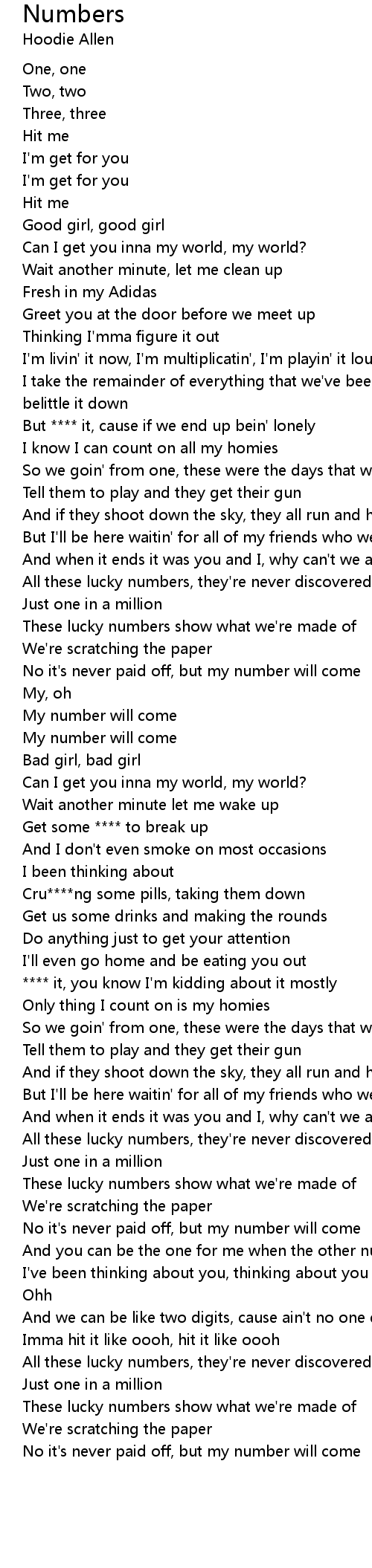 And we can be like two digits, cause ain't no one equivalent to you |