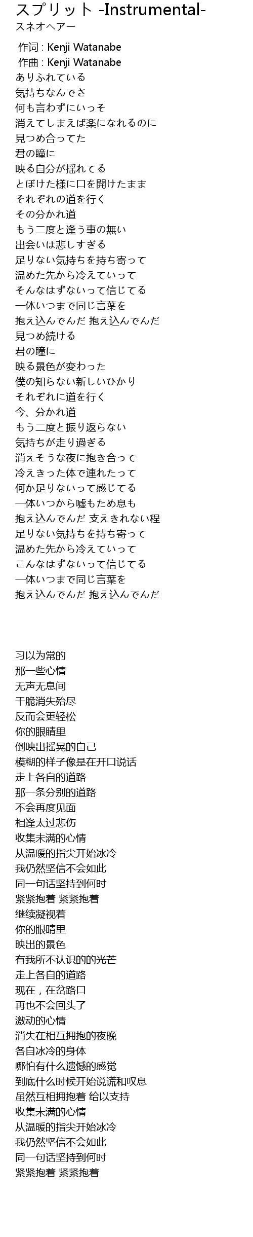 作词 : Kenji Watanabe |