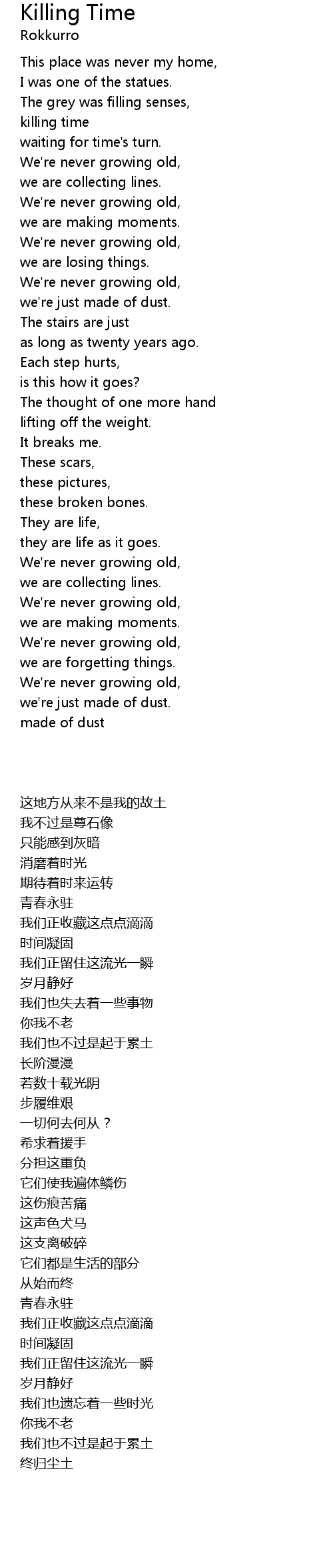 We're never growing old, |
