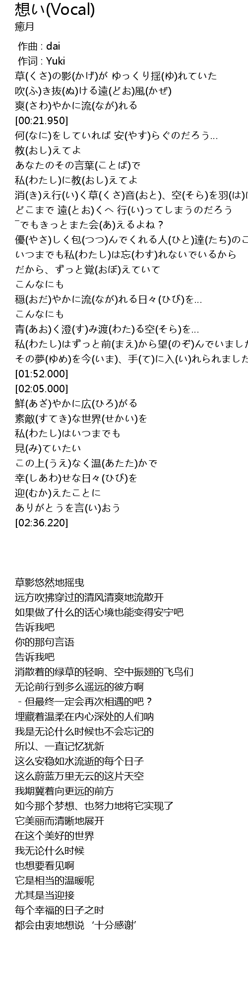 | [00:00.363] | zuò cí : Yuki |