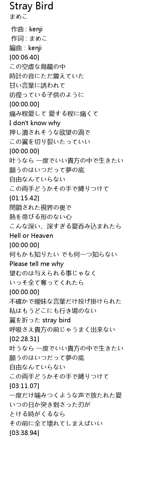 | [03:03.29] | この両手どうかその手で縛りつけて |