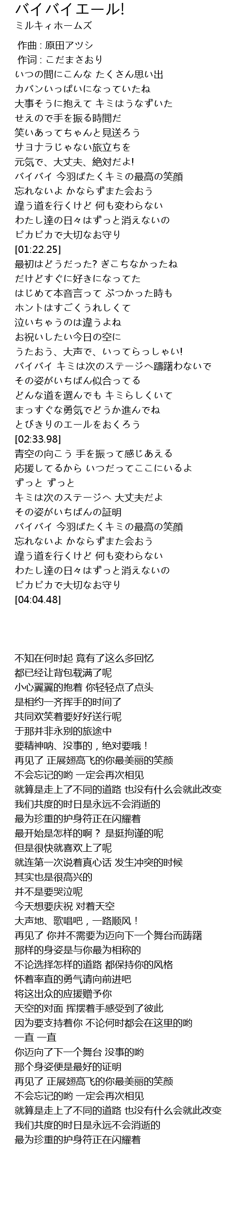 | [02:03.66] | バイバイ キミは次のステージへ躊躇わないで |