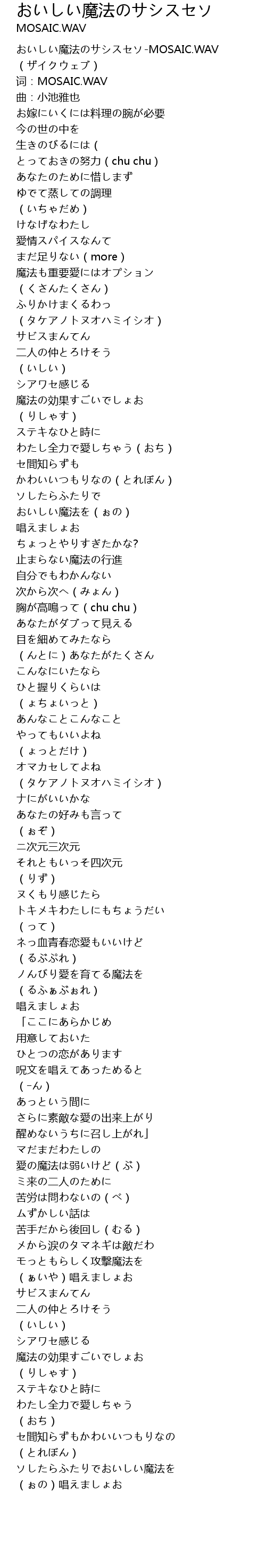 | [00:00.00] | おいしい魔法のサシスセソ-MOSAIC.WAV (ザイクウェブ) |
