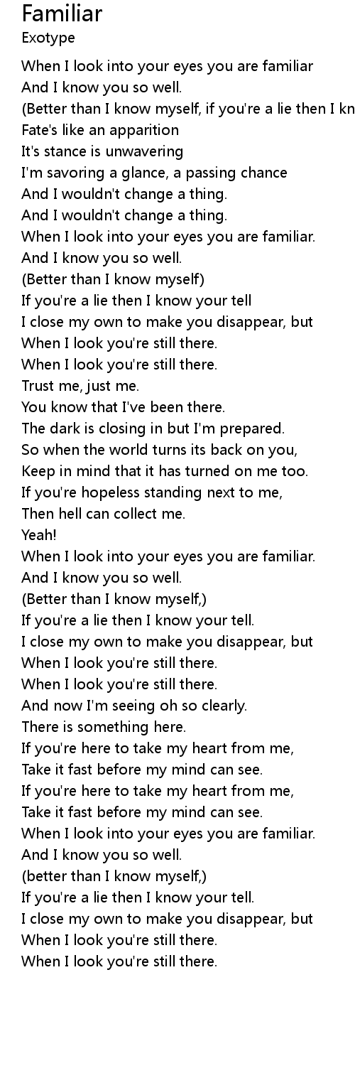 | [00:42.68] | When I look into your eyes you are familiar |