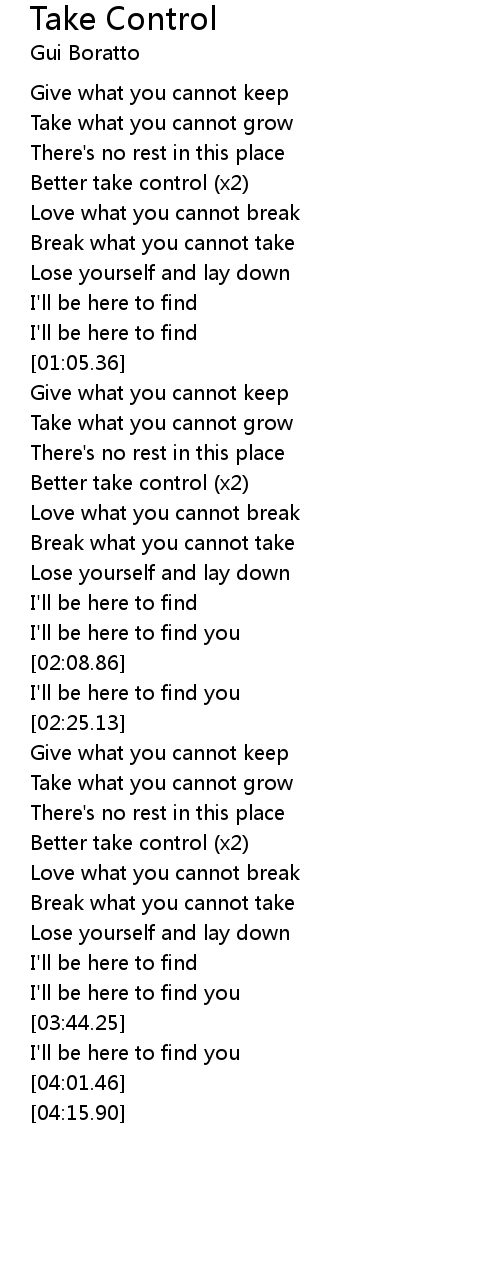 Better take control (x2) |
