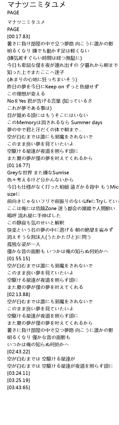 | [00:00.52] | マナツニミタユメ |