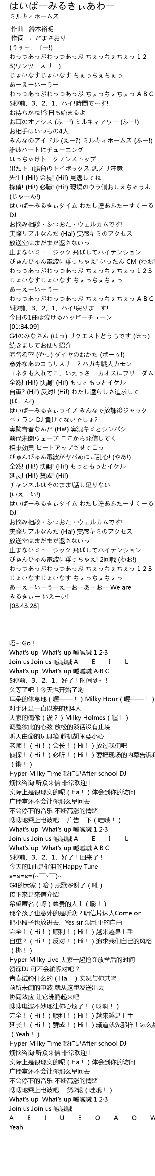 | [02:00.77] | Hyper Milky Live 大家一起抢夺放学后的时间 |