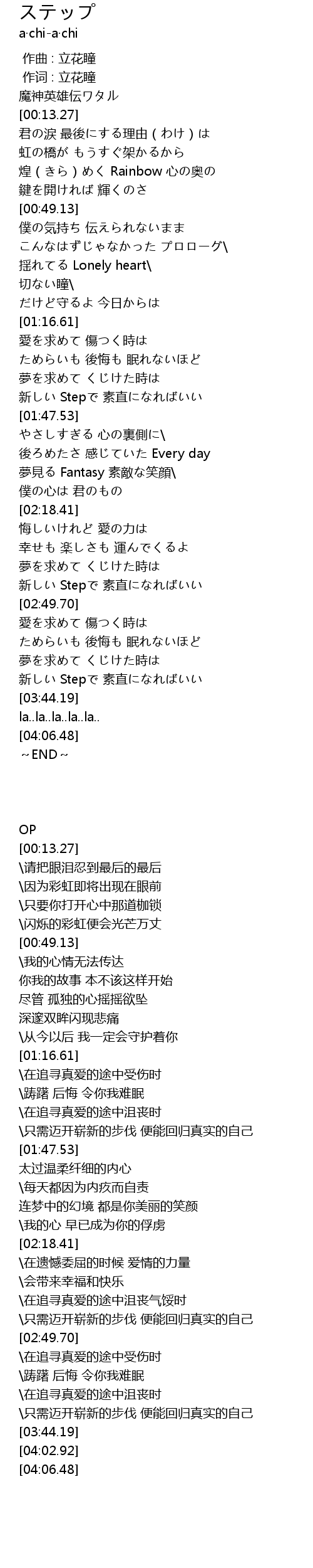 | [02:40.37] | 新しい Stepで 素直になればいい |