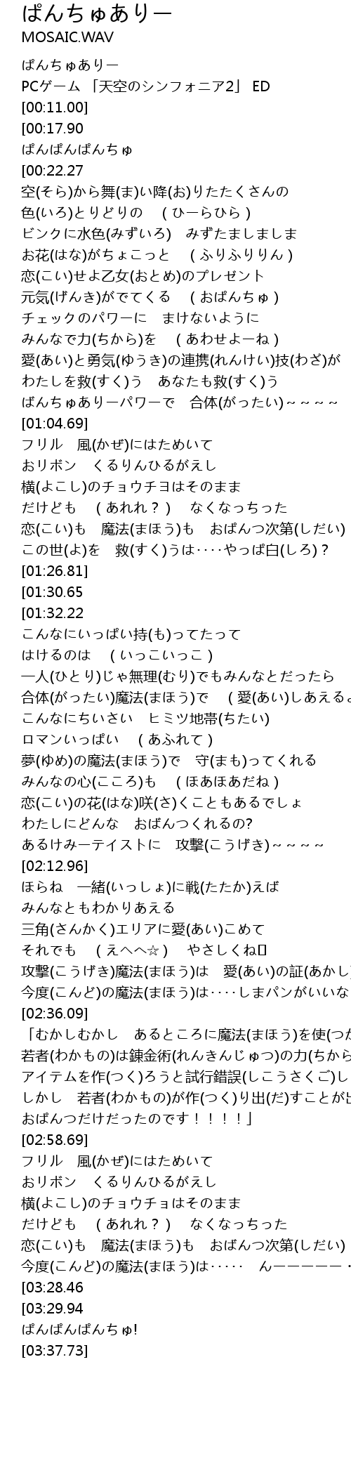 | [03:35.87] | ぱんぱんぱんちゅ! |