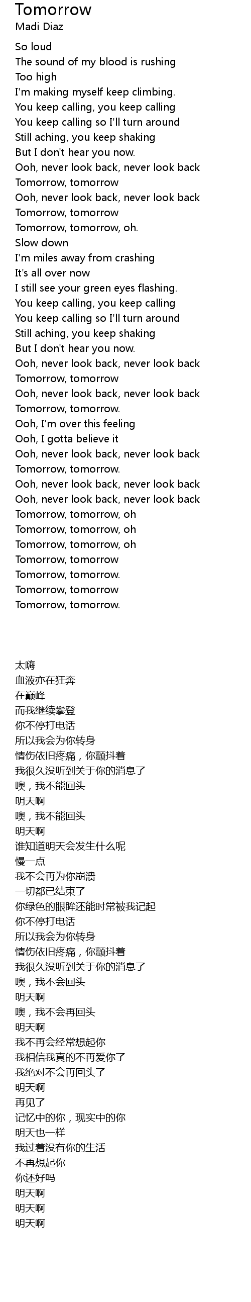 Tomorrow, tomorrow, oh |