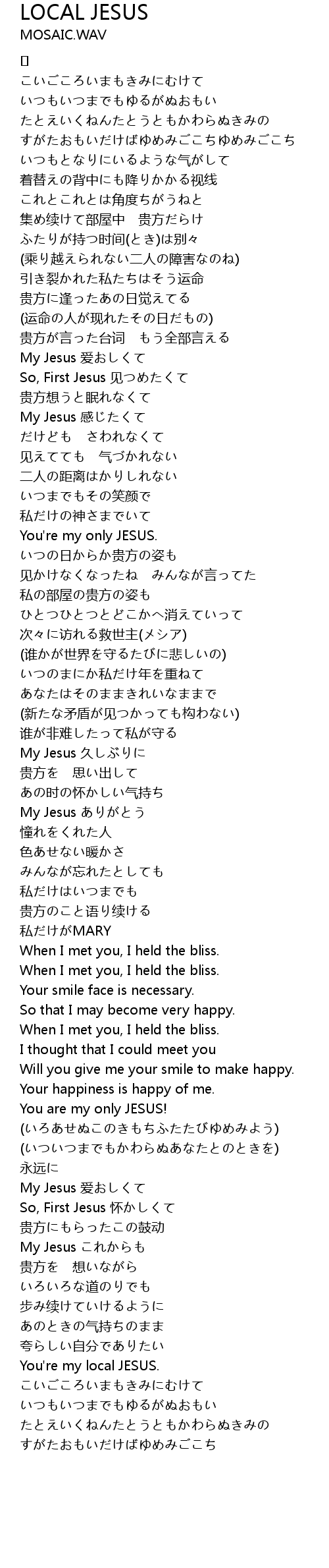 | 歌曲 | LOCAL JESUS |