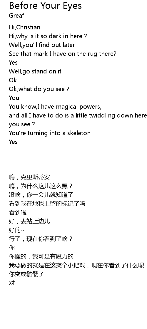 | 歌曲 | Before Your Eyes |