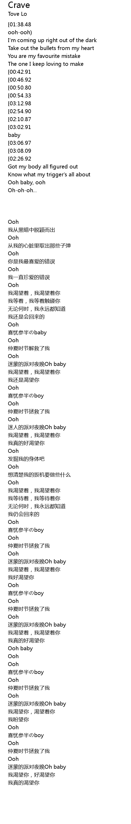 | [01:50.93][00:42.91] | Craving, I'm craving I crave you |