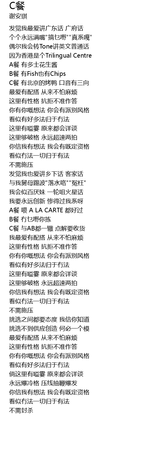 | [01:23.310] | A餐 喂 A LA CARTE 都好过 |
