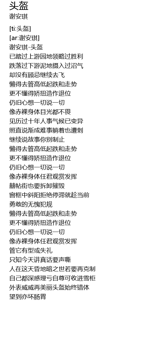 | [00:00.721] | 谢安琪-头盔 |