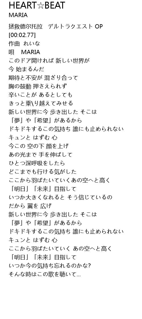 | [02:56.96] | ドキドキするこの気持ち 誰にも止められない |