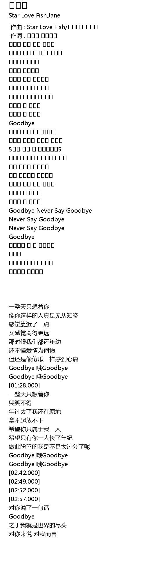 | [02:28.000] | Goodbye 哦Goodbye |