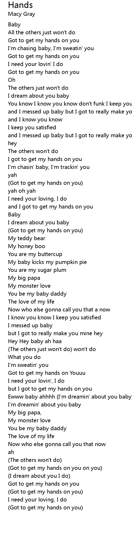 | [01:07.68] | I got to get my hands on you |