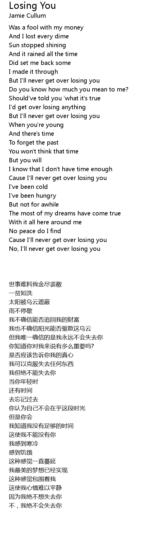 Cause I'll never get over losing you |
