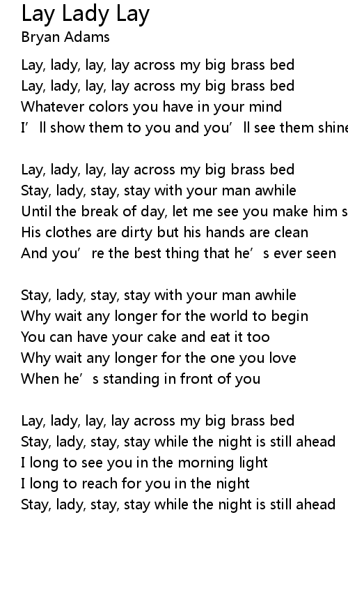 | Lay, lady, lay, lay across my big brass bed | |