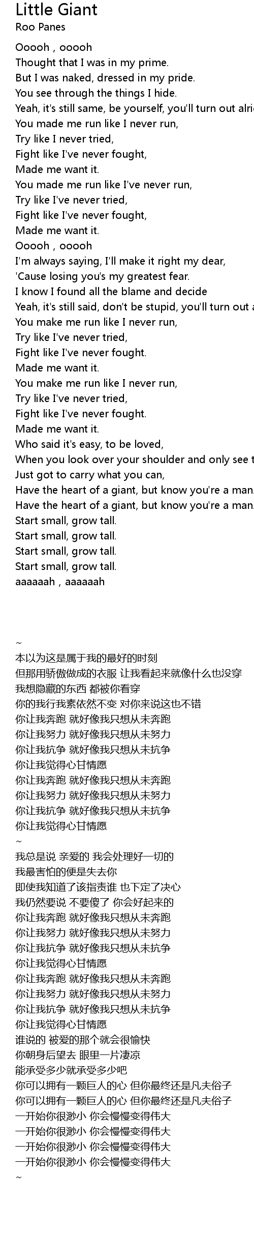 | [03:46.38] | Have the heart of a giant, but know you're a man. |