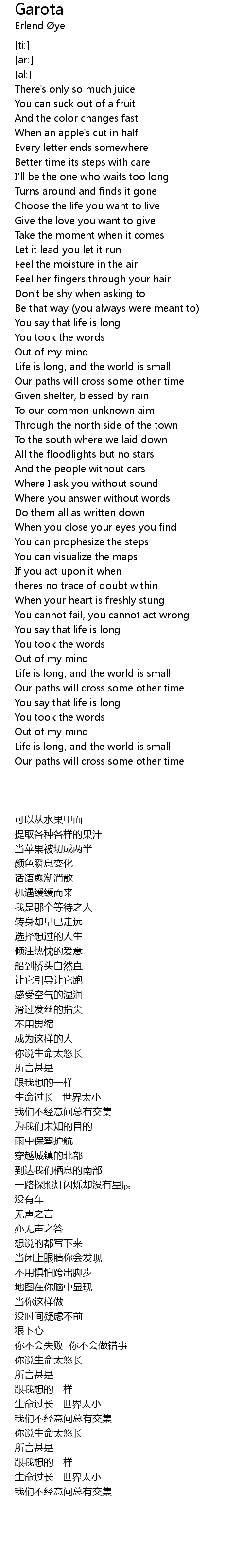 Life is long, and the world is small |