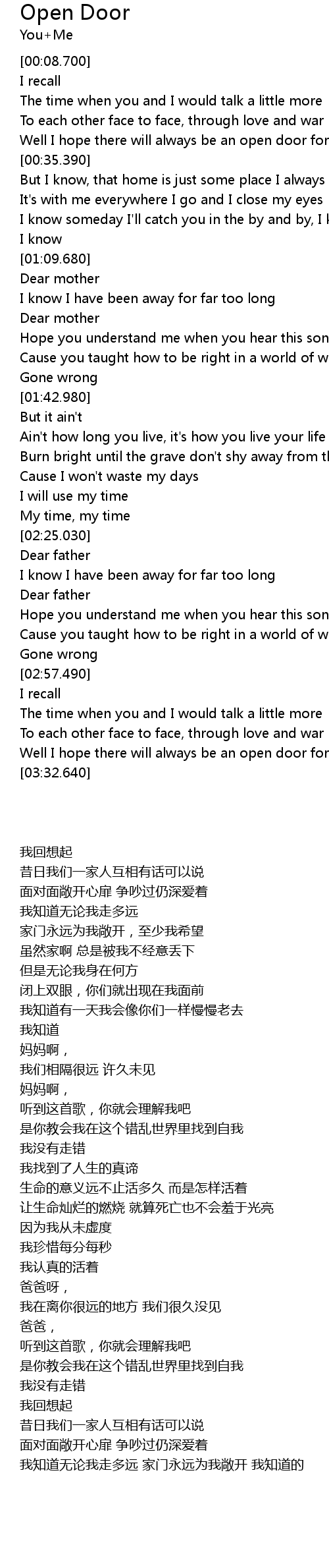 Well I hope there will always be an open door for me |