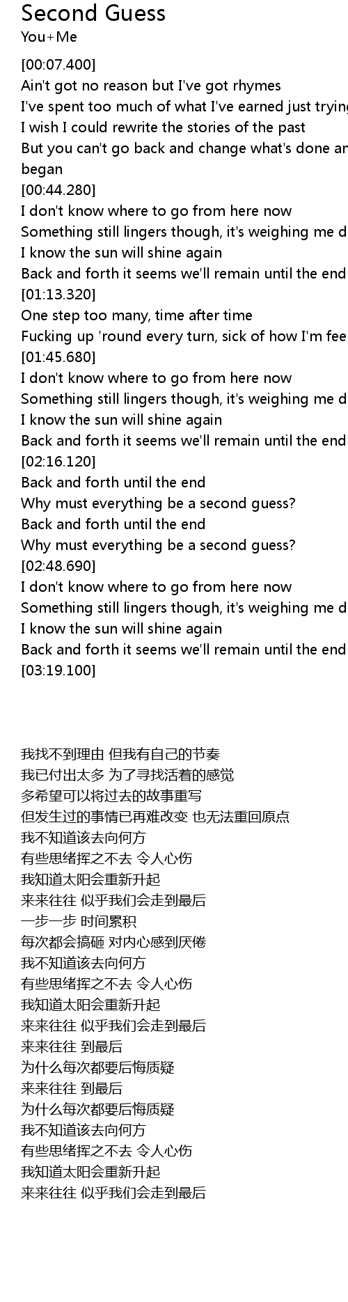 Why must everything be a second guess? |