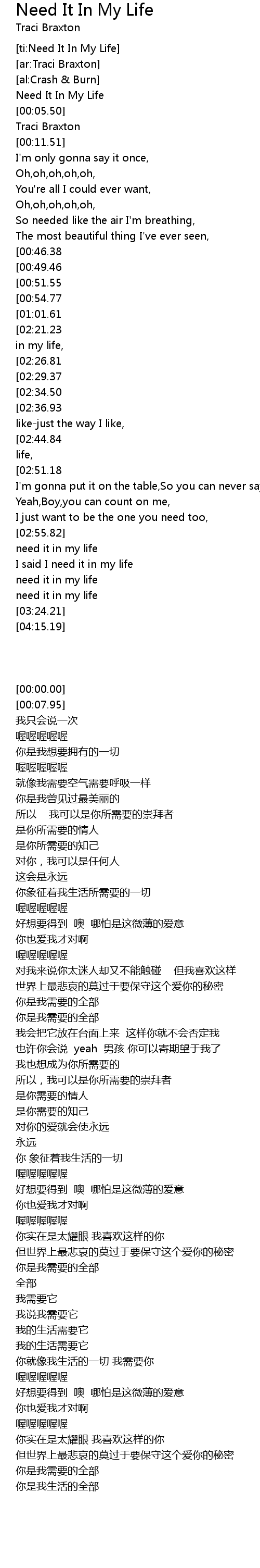 [ti:Need It In My Life] |