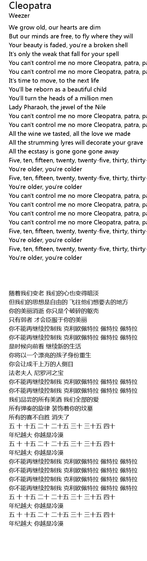 You can't control me no more Cleopatra, patra, patra |