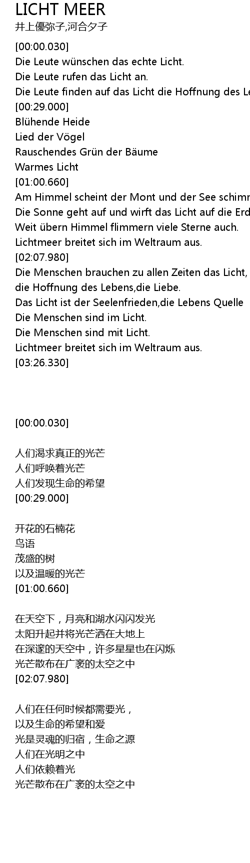 | [02:36.000] | Das Licht ist der Seelenfrieden, die Lebens Quelle |
