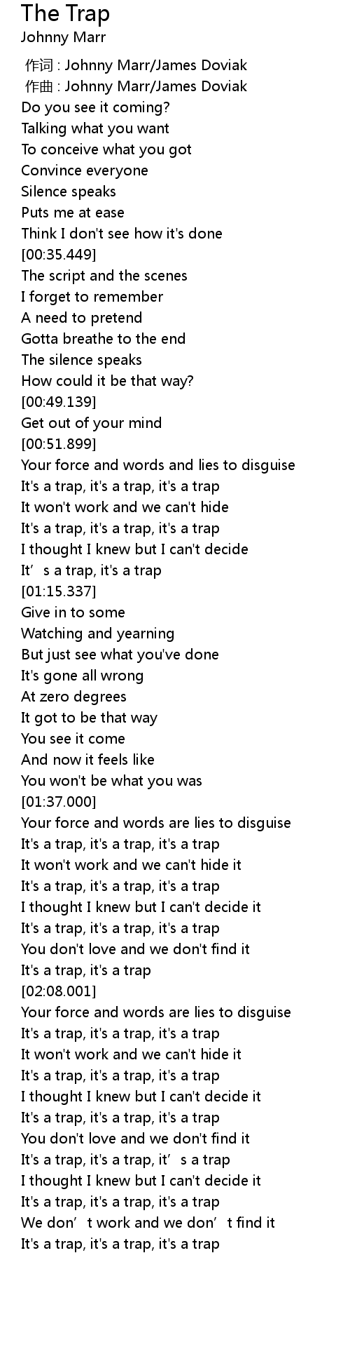 | [02:05.988] | It' s a trap, it' s a trap |