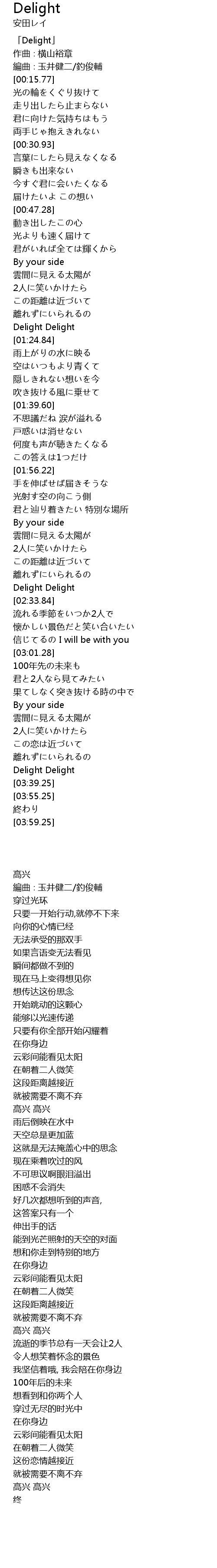 | [00:09.77] | 編曲∶玉井健二/釣俊輔 |