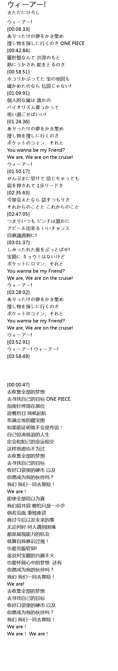 | [00:35.87] | 去寻找自己的目标 ONE PIECE |