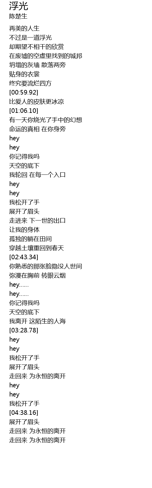 | [04:42.17] | 走回来 为永恒的离开 |