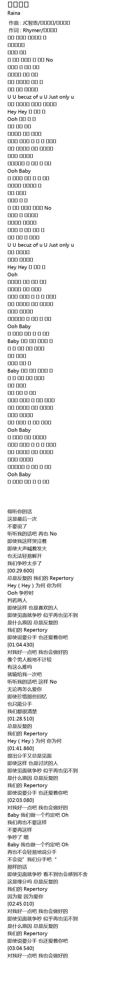 | [01:38.300] | Hey(Hey)为何 你为何 |