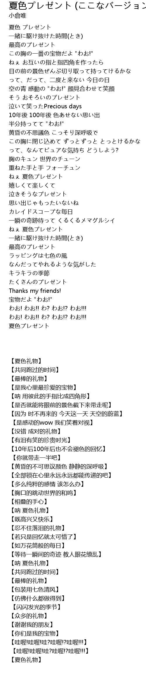 夏色プレゼント (ここなバージョン) 歌词