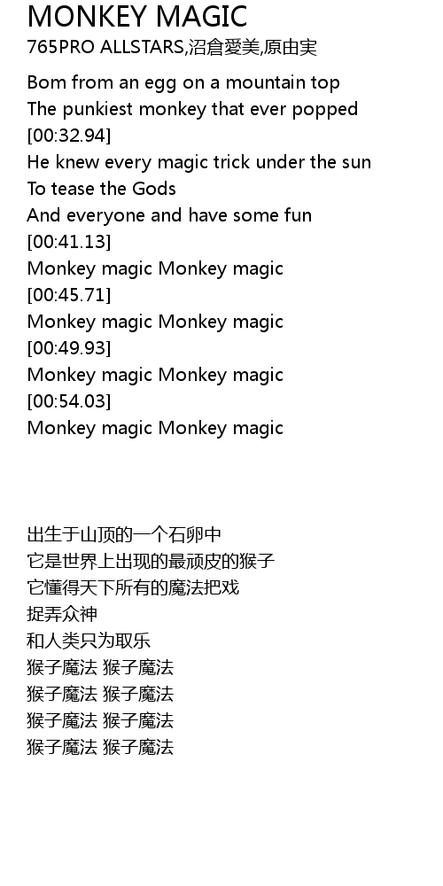 | [00:50.58] | Monkey magic Monkey magic |