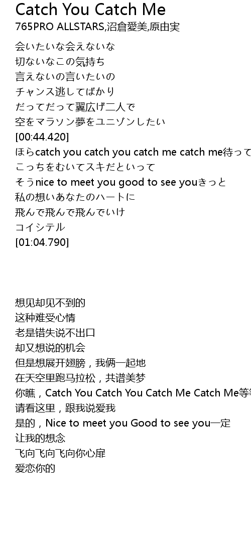 | [00:45.110] | catch you catch you catch me catch me dài |