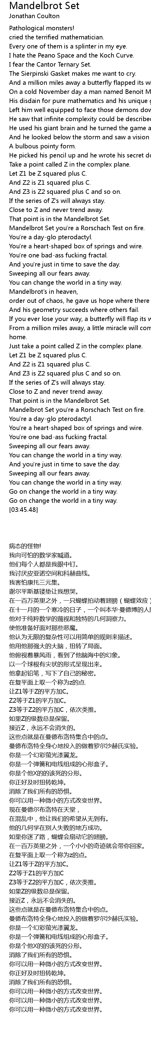 Mandelbrot Set you're a Rorschach Test on fire. |