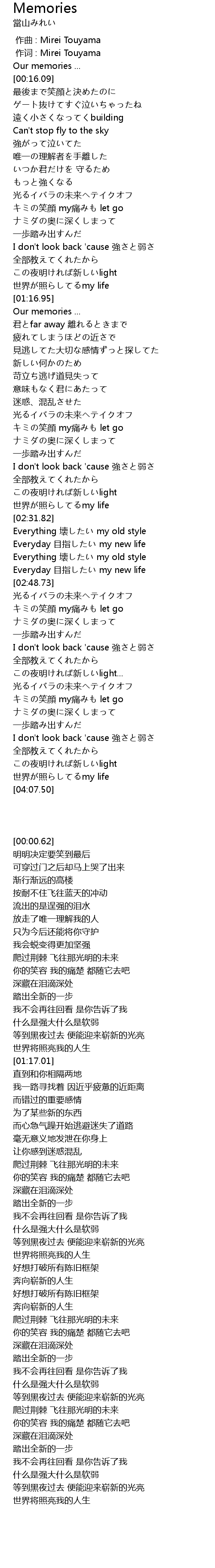 | [00:00.20] | 作词 : Mirei Touyama |