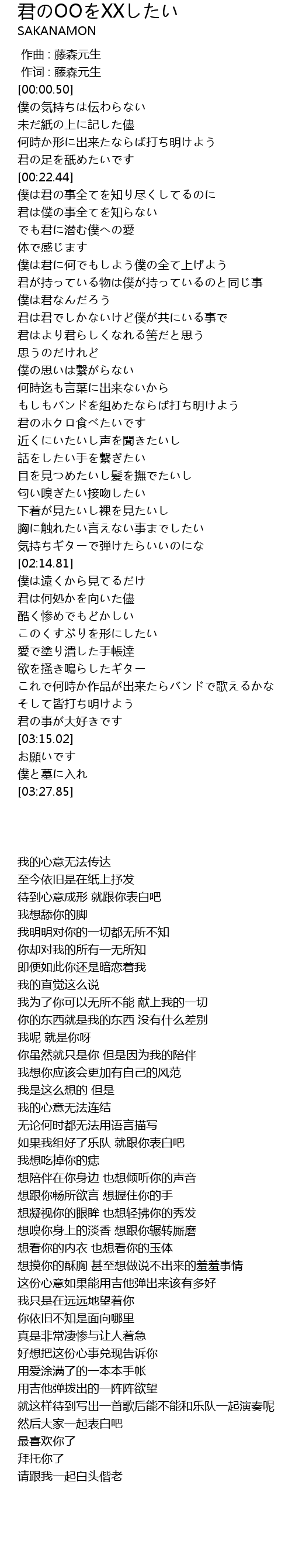 | 歌曲 | 君のOOをXXしたい |