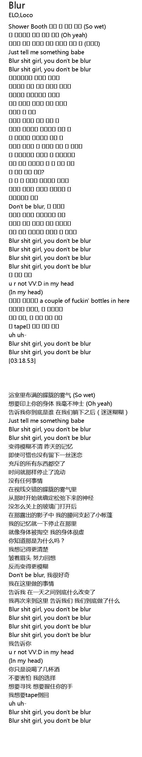 | [03:01.15] | Blur shit girl, you don't be blur |