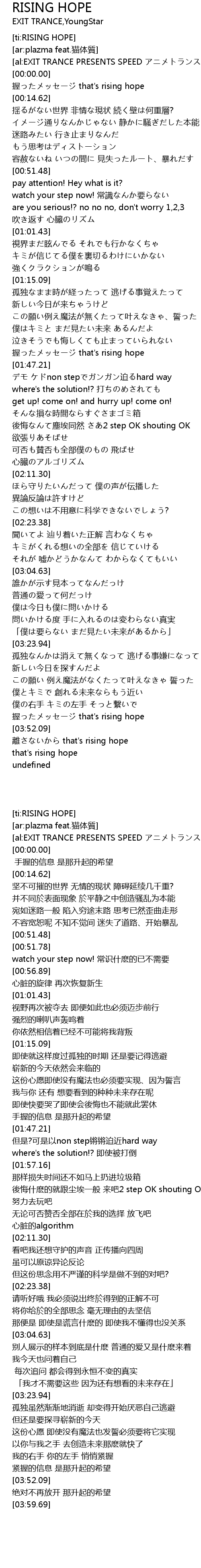 | [01:39.87] | 握ったメッセージ that's rising hope |
