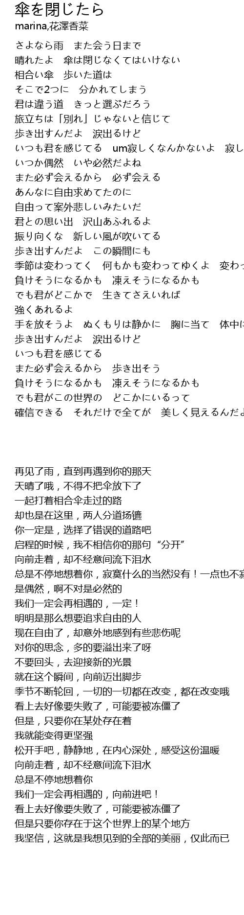 | [00:24] | 天晴了哦,不得不把伞放下了 |