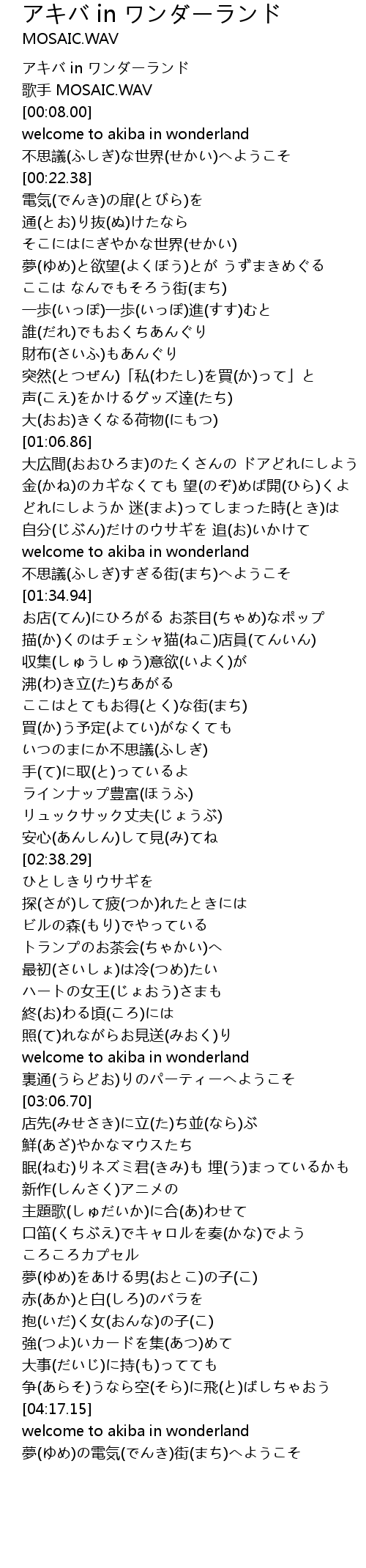 | [01:31.54] | 不思議(ふしぎ)すぎる街(まち)へようこそ |